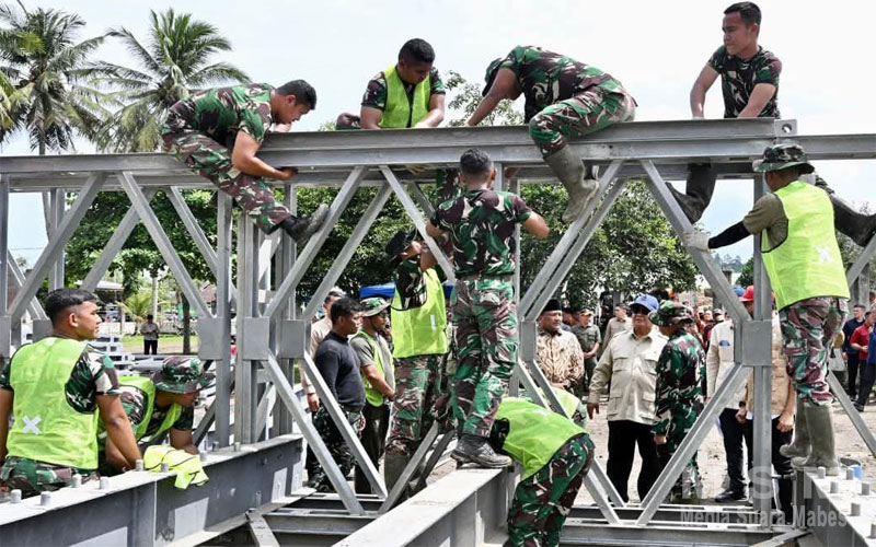 Dalam agenda tersebut, Presiden Prabowo bersama Menhan Sjafrie meninjau progres pembangunan Jembatan Bailey Teupin Mane, salah satu jalur vital penghubung Bireuen–Takengon yang sempat terputus akibat bencana. Jembatan sementara ini menjadi elemen penting dalam memulihkan kembali akses darat, distribusi logistik, serta mobilitas masyarakat.