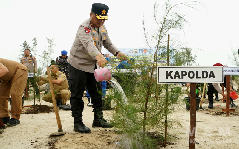Dari pantauan, penanaman yang dilakukan Polda Babel ini dipusatkan di Kawasan Pantai Lintas Timur Desa Air Anyir Kabupaten Bangka.