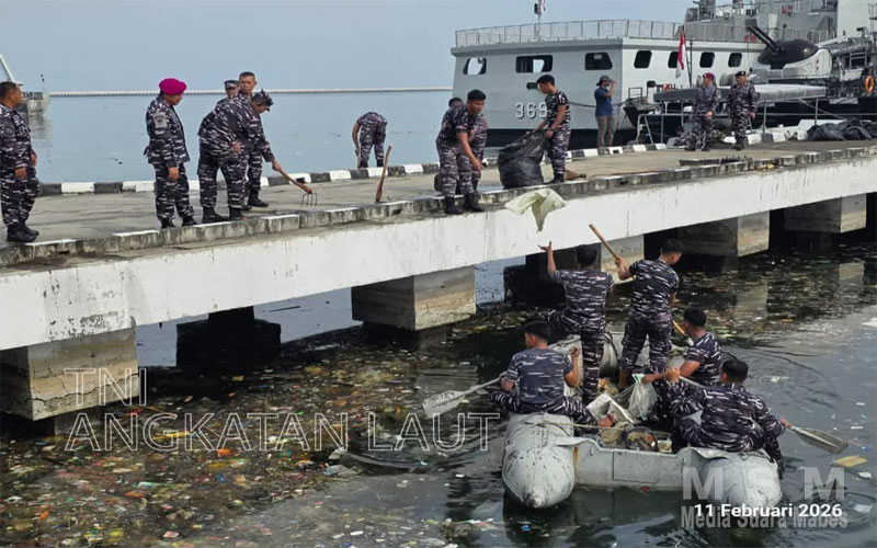 MediaSuaraMabes, Jakarta – Komitmen TNI Angkatan Laut dalam menjaga kelestarian lingkungan maritim kembali diwujudkan melalui aksi nyata di lapangan. Prajurit jajaran Komando Armada RI bersama Komando Daerah TNI Angkatan Laut (Kodaeral) III bersinergi dengan berbagai instansi maritim melaksanakan aksi bersih-bersih kawasan Dermaga Pondok Dayung, Tanjung Priok, Jakarta Utara, Rabu (11/2).