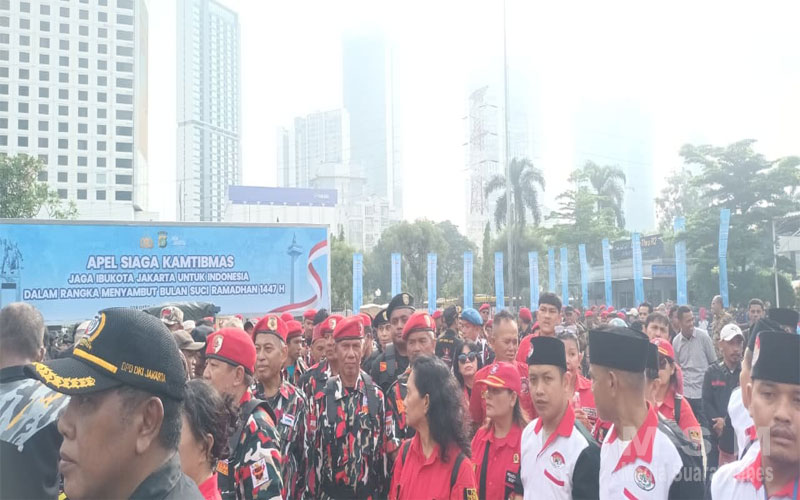 “Pada hari ini melaksanakan Apel Siaga Kamtibmas Jaga Jakarta untuk Indonesia dalam rangka menyambut Bulan Suci Ramadan 1447 Hijriah. Untuk apel pagi ini kita melibatkan 10.000 orang dari berbagai elemen,” ujar Kapolda.