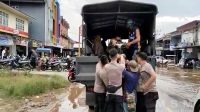 Kerahkan 5 Unit Kendaraan, Polres Melawi Berikan Angkutan Gratis Bencana Banjir
