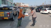 Patroli Jaga Kondusipitas Pusat Keramaian Polsek Cikarang Barat Berikan Makanan Pada Warga