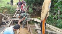 Babinsa Bersama Masyarakat Turun Langsung Perbaiki Jembatan Yang Rusak di Sungai Kasian