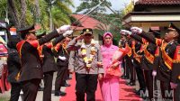 Polres Belitung Timur Menggelar Tradisi Pedang Pora Penyambutan Dan Pelepasan Kapolres Belitung Timur