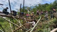 Peduli Masyarakat Perbatasan, Satgas Yonarmed 16/TK Gotongroyong Perbaiki Jembatan
